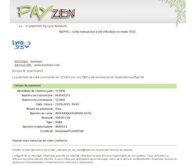Ce mail sera envoyé dès que le remboursement est effectué, soit depuis le back-office de Payzen, soit via le Web service de remboursement.