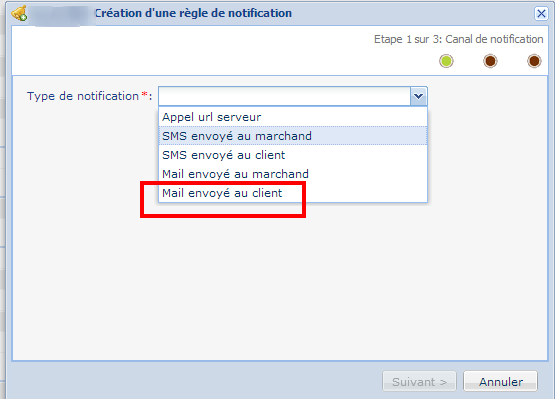 - Mail envoyé au marchand (fonctionnalité de base mais ce menu permet d'ajouter des critères d'envoi. Par exemple envoyer un mail au service fraude du marchand dès que le commande dépassé x euros)